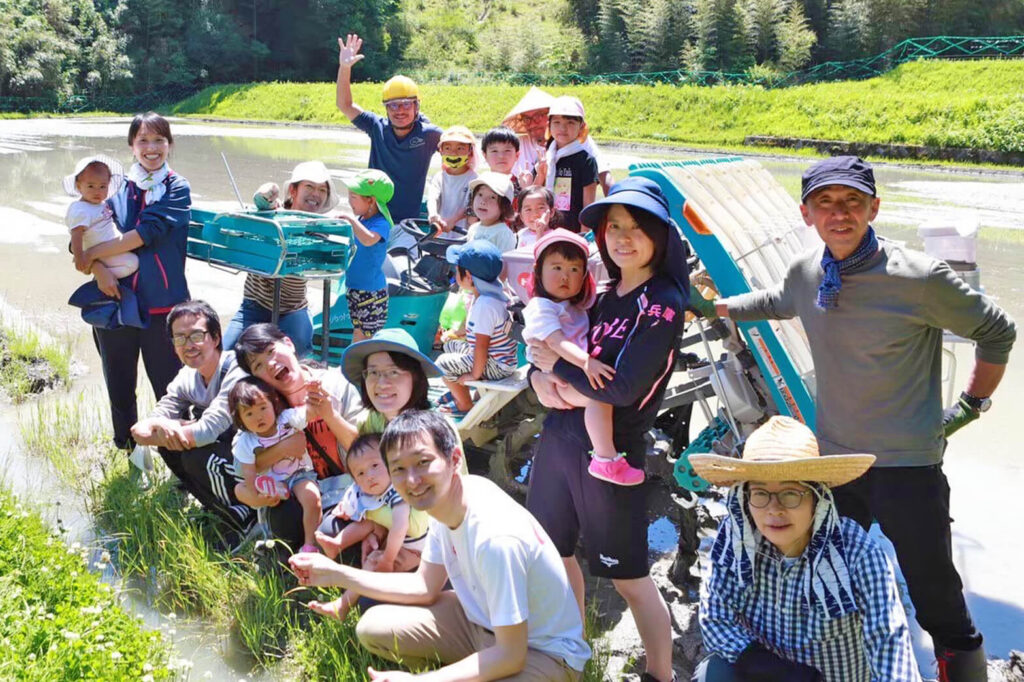 しきしまの家「自給家族」は、しきしまの家を拠点に、生産者と消費者が家族のようにつながって、安全で美味しいお米を自給し、その生産資源である農地を荒廃から守り、集落や地域の持続化に資する、いなかとまちのみんなが幸せになるプロジェクトです。