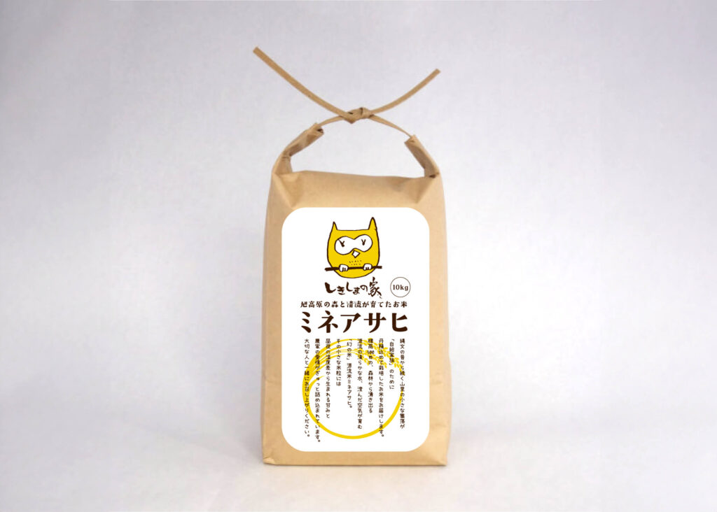 しきしまの家が家族に届けるお米は、「幻の米」と呼ばれ、ほとんど流通しない自給のためのお米「源流米ミネアサヒ」。森林から湧き出る清らかな水、昼夜の温度差から生まれる粘りと旨味が際立つお米を、農薬、化学肥料を慣行栽培の2分の1以下に抑えた「特別栽培米」として育てます。